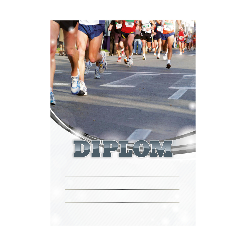 Atletický diplom BĚH 6630 s běžci na trati, s šedým polem pro 4 řádky textu a šedým nápisem DIPLOM. Běžecký diplom 6630 máme ve formátu A4 a A5. Papírový diplom s motivem BĚH má gramáž 250 g/m2.