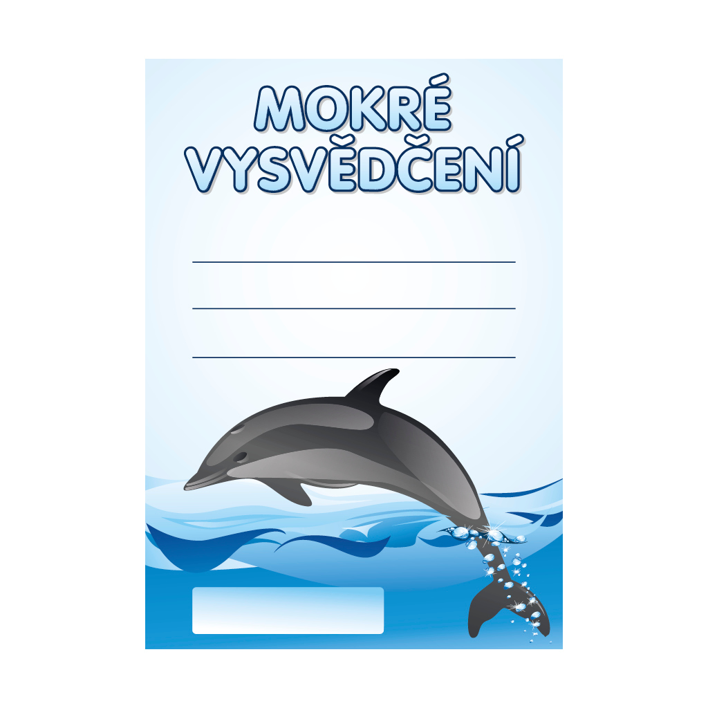 Modrý dětský diplom DĚTSKÉ PLAVÁNÍ 6703 s delfínem. Dětský plavecký diplom má pole pro 3 řádky textu, pole pro razítko či název plavecké školy a bledě modrý nápis MOKRÉ VYSVĚDČENÍ. Hodí se tak především jako ocenění plaveckých dovedností dětí. Dětské plavecké vysvědčení 6702 máme ve formátu A4 a A5. Papírový dětský diplom s motivem delfína má gramáž 250 g/m2.