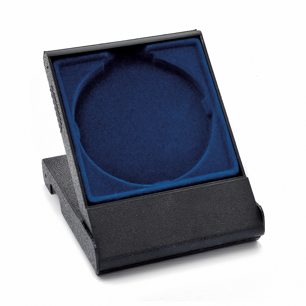 Etue pro medaile o průměru 50 mm. Neprůhledná krabička má rozměr 70x90 mm s modrou sametovou vložkou, do které se vsadí medaile. Etue jsou vhodné pro pamětní medaile a pro významné sportovní či kulturní události.