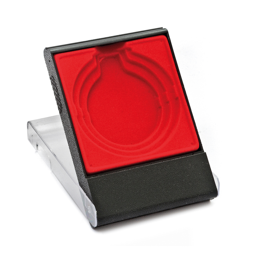 Průhledná etue pro medaile o průměru 50-70 mm. Krabička má rozměr 84x116 mm s červenou sametovou vložkou, do které se vsadí medaile. Etue jsou vhodné pro pamětní medaile a pro významné sportovní či kulturní události.