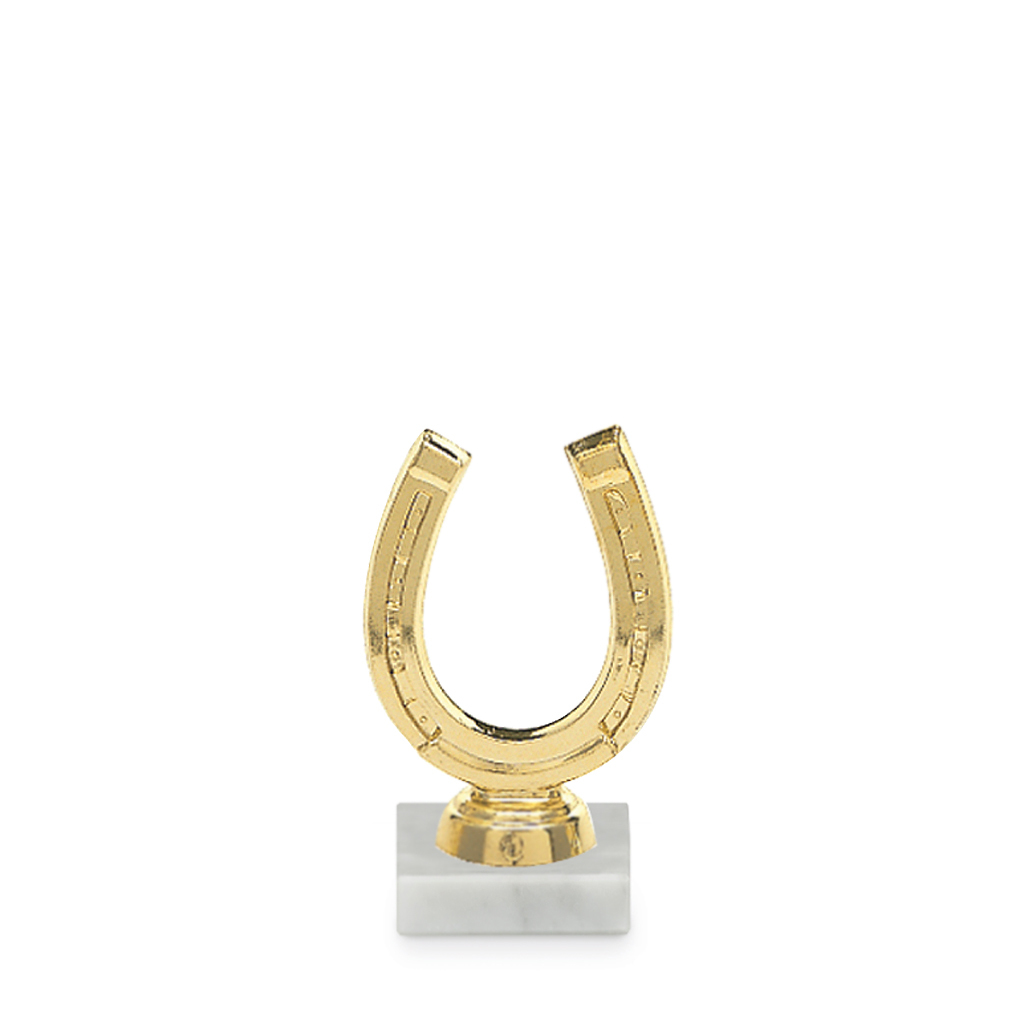 Figurka podkova ve zlaté barvě na mramorovém podstavci. Podkova s podstavcem je vysoká 7 cm. Na mramorový podstavec lze umístit laserový nebo papírový štítek s textem a nebo logem. Podklady pro výrobu štítku na figurku můžete přiložit v prvním kroku objednávky.