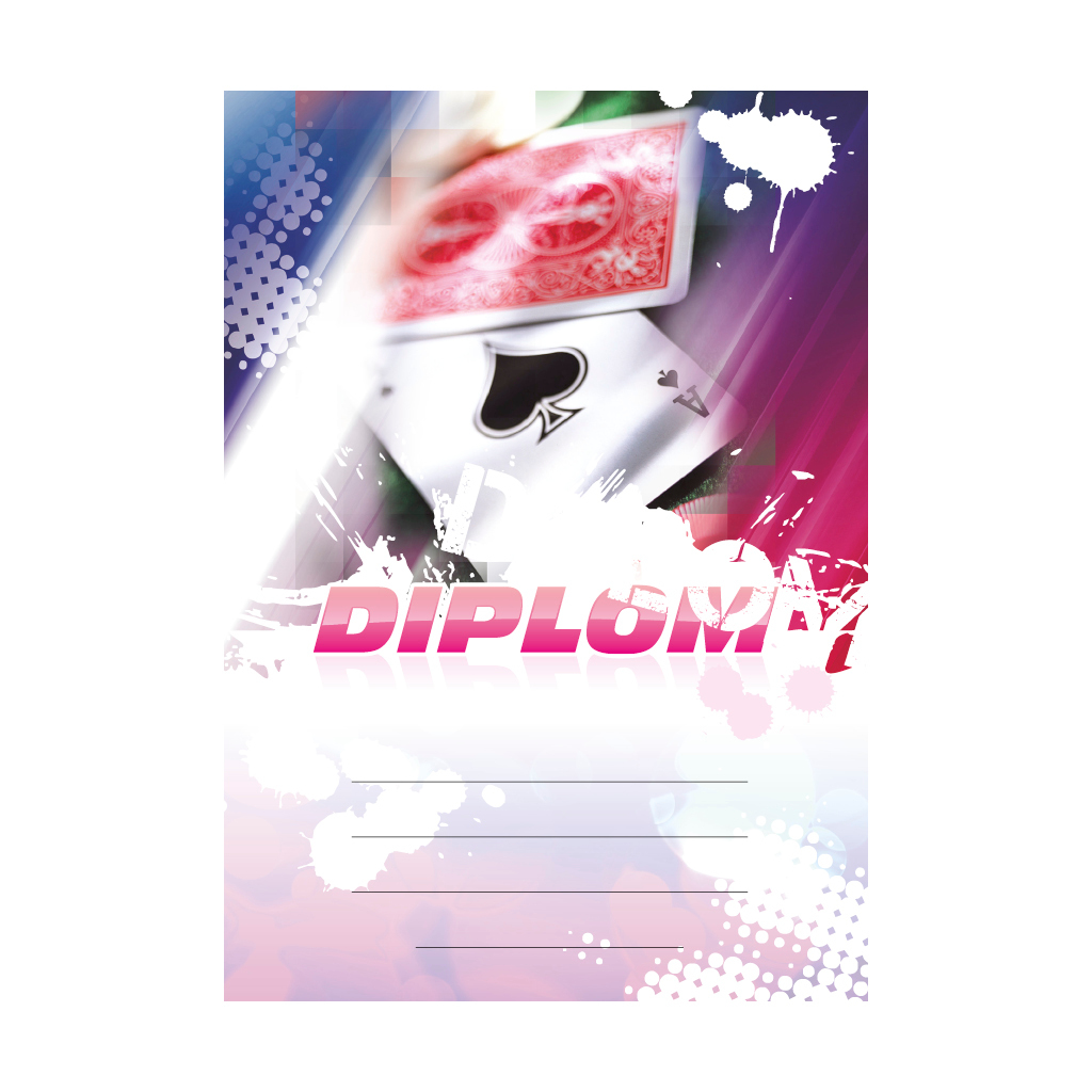 Růžový diplom POKER 6681 s detailem pokerových karet, s polem pro 4 řádky textu a růžovým nápisem DIPLOM. Karetní diplom 6681 máme ve formátu A4 a A5. Papírový diplom s karetních her má gramáž 250 g/m2.
