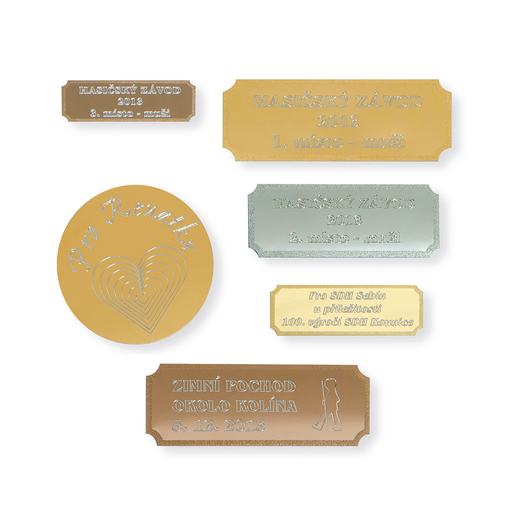 Štítek kovový - gravírovaný, 50x16 mm, zlato