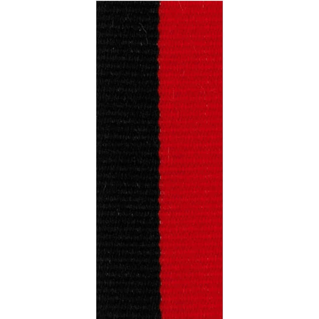 Stužka na medaili v černočervené kombinaci s kovovou sponkou ve zlaté barvě.