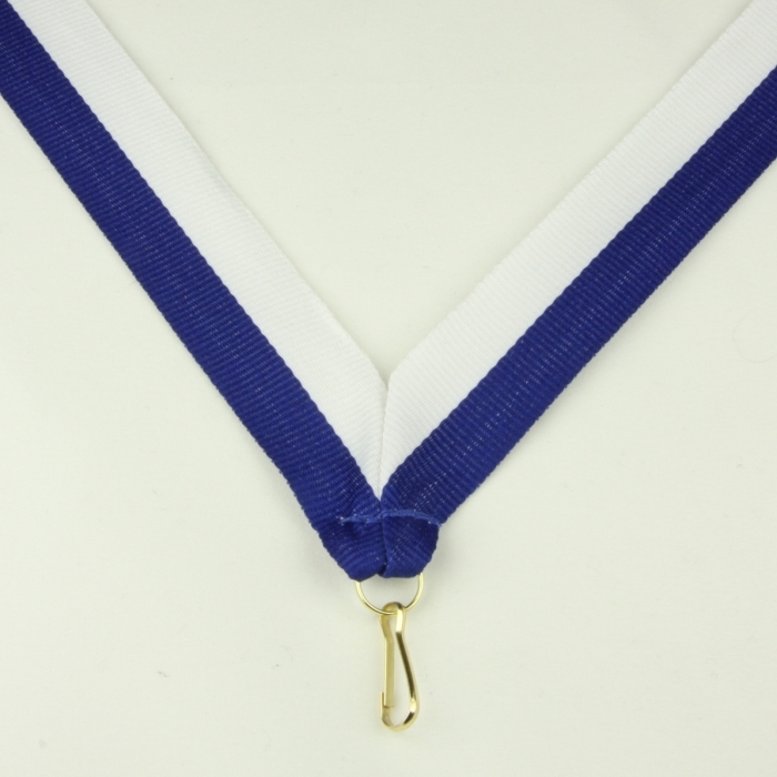 Stužka na medaili v modrobílé barvě s kovovou sponkou ve zlaté barvě.