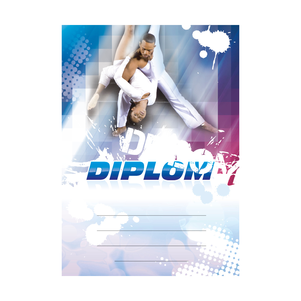 Modrý diplom LATINSKÝ TANEC 6685 s tanečním párem, s polem pro 4 řádky textu a modrým nápisem DIPLOM. Taneční diplom 6685 máme ve formátu A4 a A5. Papírový diplom s motivem tanečních soutěží má gramáž 250 g/m2.