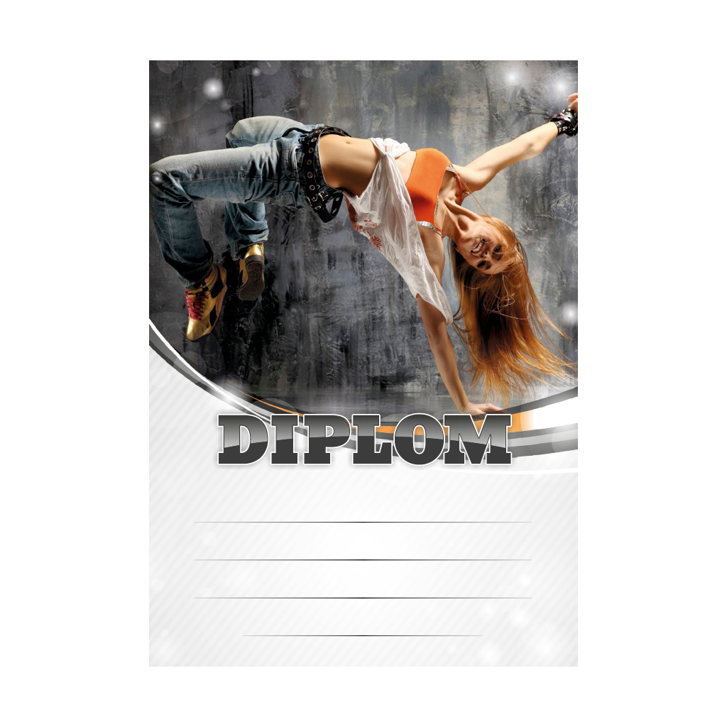 Šedý diplom MODERNÍ TANEC 6687 s tanečnicí na jedné ruce, s polem pro 4 řádky textu a tmavě šedým nápisem DIPLOM. Taneční diplom 6687 máme ve formátu A4 a A5. Papírový diplom s motivem tanečních soutěží má gramáž 250 g/m2.