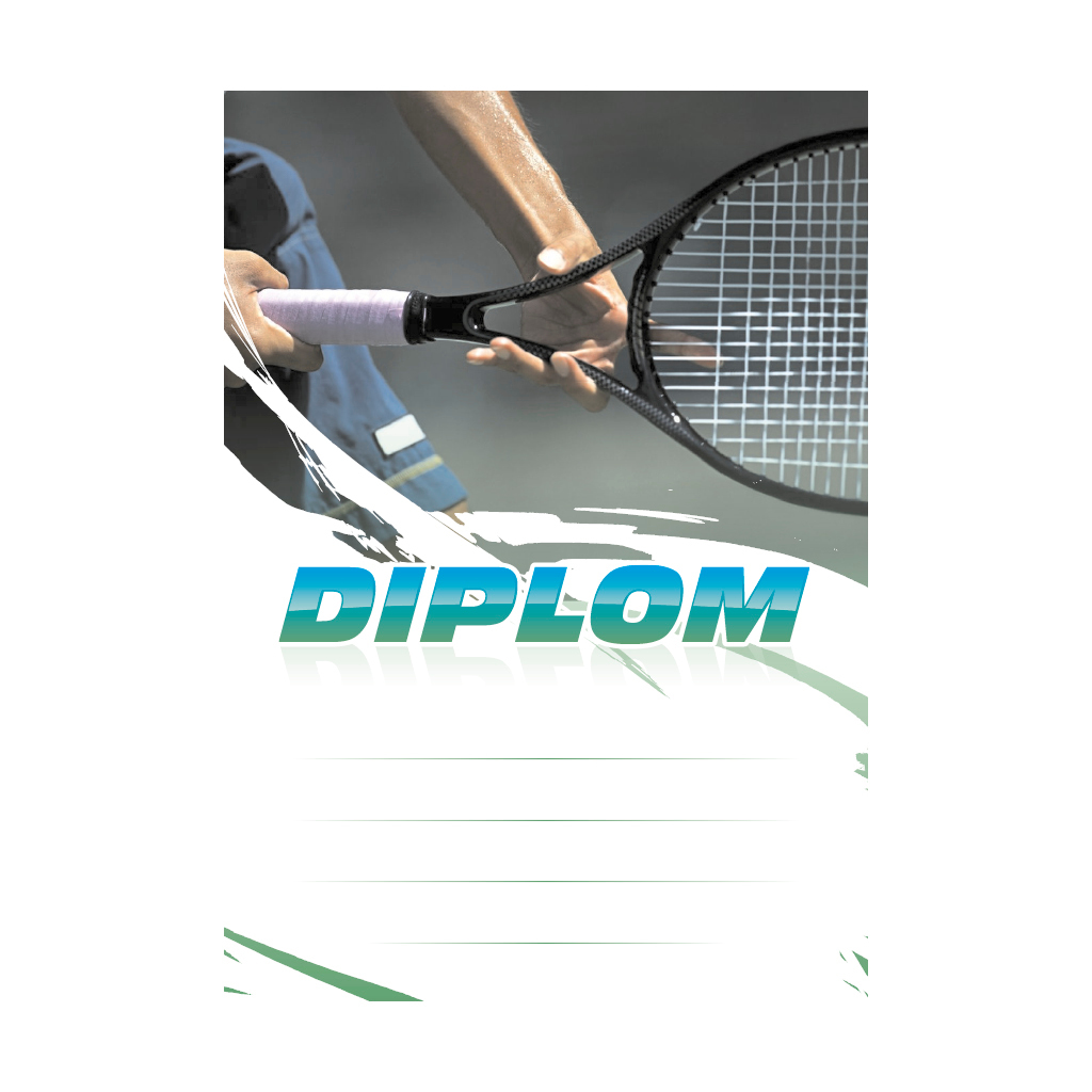 Tenisový diplom TENIS 6621 s rukou držící tenisovou raketou, s polem pro 4 řádky textu a modrozeleným nápisem DIPLOM. Tenisový diplom 6621 máme ve formátu A4 a A5. Papírový diplom s motivem TENIS má gramáž 250 g/m2.